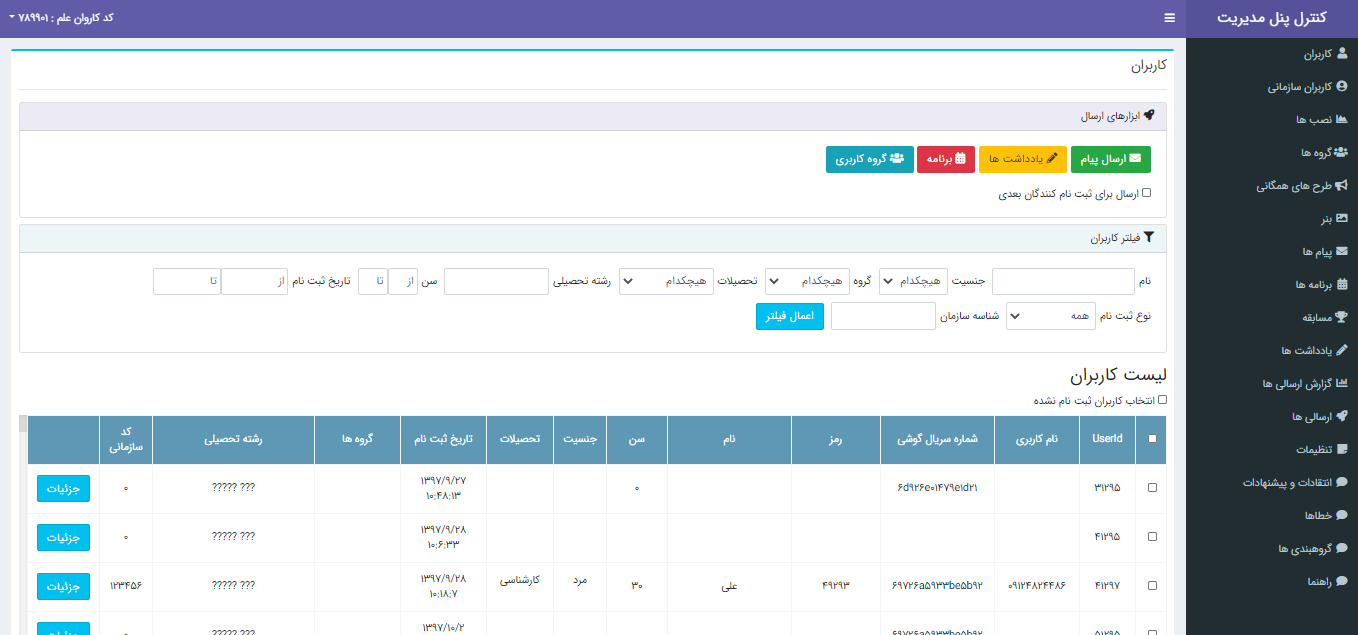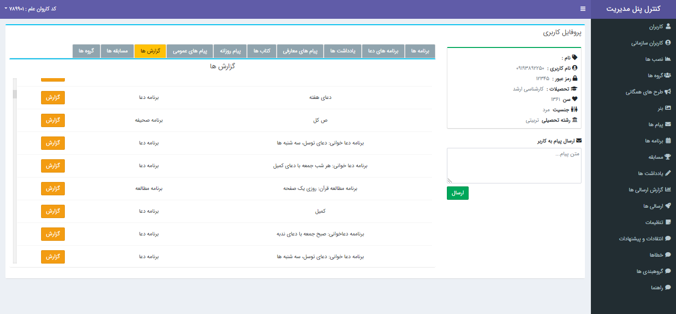 مدیر سایت می تواند از نحوه اجرای برنامه های ارسالی به سوی کاربران گزارش کاملی دریافت نماید.