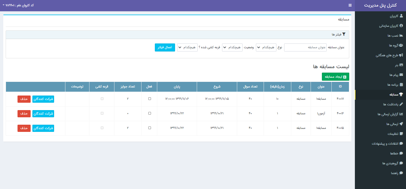 خود کاربران نیز بعد از اتمام زمان مسابقه به سوالات، پاسخنامه ، نمره و رتبه گروهی خود دسترسی خواهند داشت.